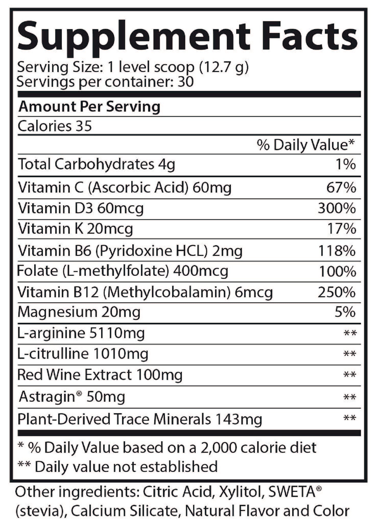 Natural Oxide is a one of a kind heart health supplement scientifically designed to help support increased nitric oxide levels all day long. With over 5,000mg of L-arginine to kick start nitric oxide production and over 1,000mg of L-citrulline to keep your cardiovascular system pumping at optimum levels all day long. We've also included 100mg of trace minerals sourced directly from the Great Salt Lake, 100 mg of red wine extract all served up in a delicious sugar free drink that will help keep you hydrated. Don't wait! Try Natural Oxide today to give your heart the holiday it deserves.